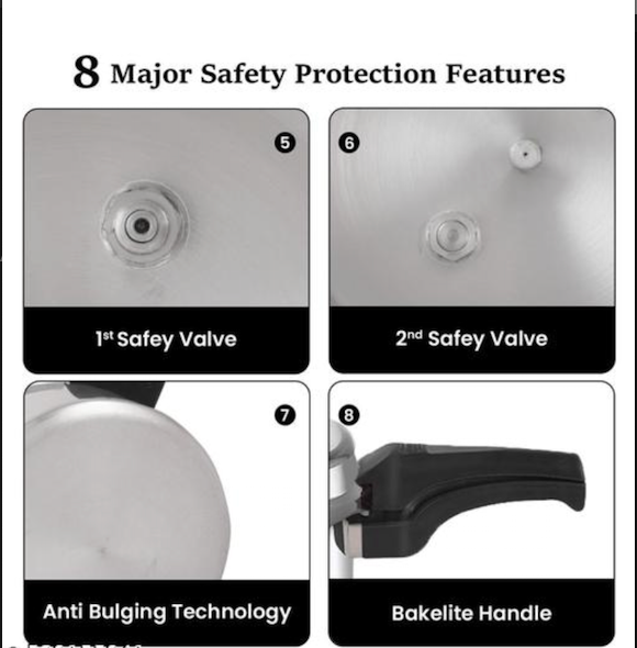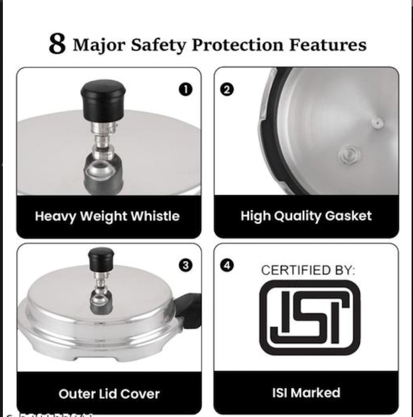 Introducing Chef Genie 3 and 5 set of 2 litres pressure cooker- the epitome of culinary convenience. It is crafted from durable aluminium material that ensures long lasting performance. The 3 and 5 litre capacity cooker is ideal for small and medium families' daily cooking needs. It is equipped with a heat-resistant bakelite handle that provides a safe and sturdy grip while cooking. This cooker ensures even cooking, preventing food from overheating and retaining delicious flavors. The advanced safety mechanisms like metallic high pressure safety valve, pressure release valve and gasket release system guarantee worry-free operation. Elevate your cooking experience with our pressure cooker, a kitchen essential for modern households.