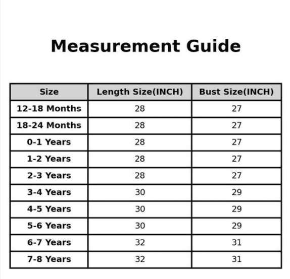 0-1 Years (Bust Size: 27 in, Length Size: 28 in)