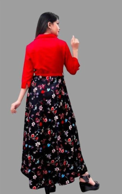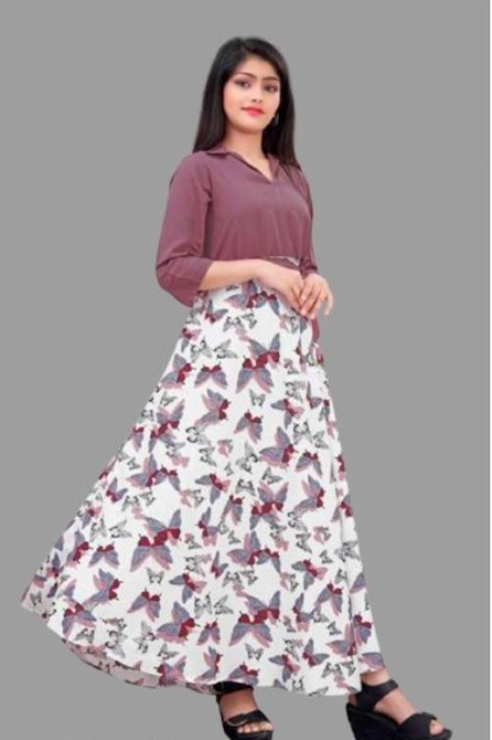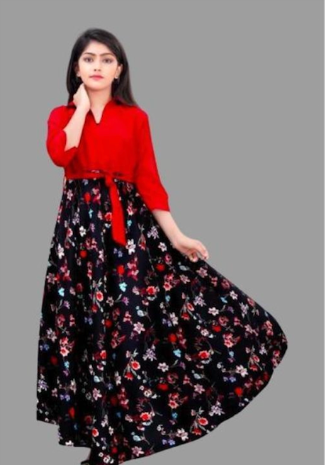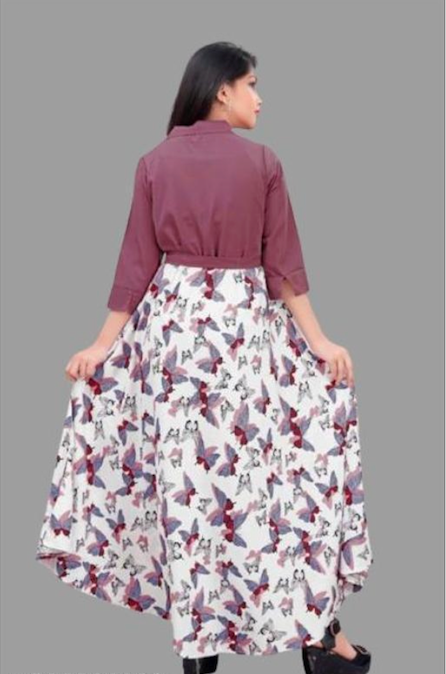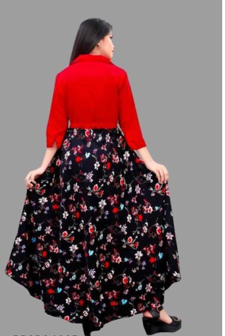 Spruce up your little girls wardrobe with this shirt style dress from MAUSAMI CREATION available on meesho. This floral long dress is perfect for brunch dates with your friends, even fancy daytime soirees or a night get-togethers with family. This white shirt style long dress is a great addition for your stylish wardrobe. It is crafted from crepe fabric for a luxurious touch, it features collar neck, 3/4 roll up sleeve, febric belt and flared hem with beautiful floral print further plays with the summer theme. Team up with cute hairband and chunky white sandals for the best look.