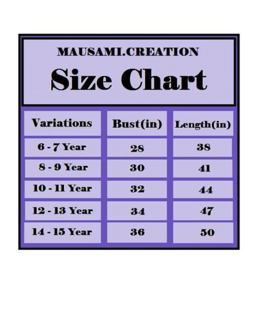 13-14 Years (Bust Size: 34 in, Length Size: 50 in)