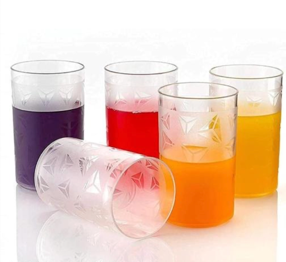 Name: KITCHFLYENT (Pack of 6) Dimond Curved Shaped Glasses / Unbreakable Prism Pattern Water/Juice Drinking Glasses Set Of 6 ( Clear, Plastic) / Each glass has capacity of 300ml#1