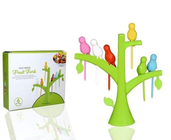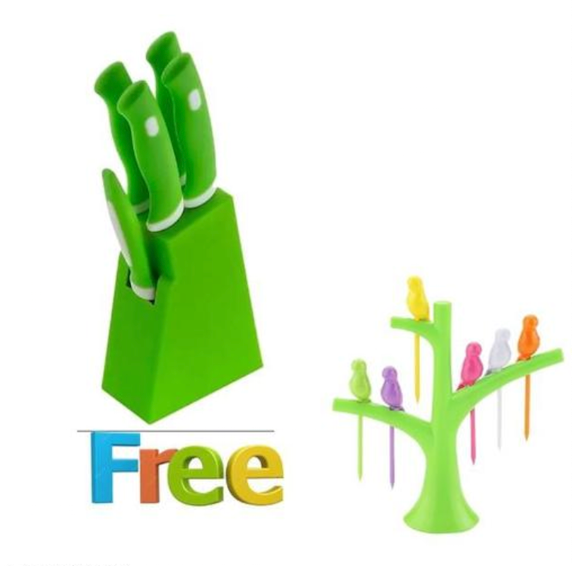 Name: 5 Pieces Kitchen Knife Set with Holder Stand 4 Knife + 1 Peeler + 1 Stand (Green) And Fruit Fork