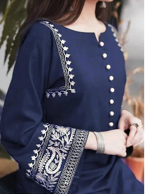L (Bust Size: 40 in, Shoulder Size: 14.5 in, Kurta Waist Size: 38 in, Kurta Length Size: 44 in, Bottom Waist Size: 30 in, Bottom Length Size: 39 in)Â