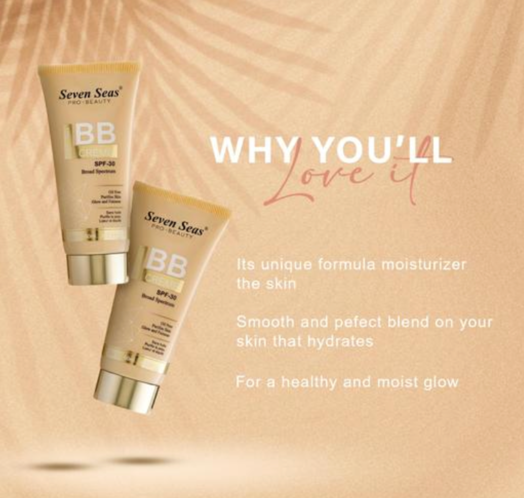 Name: Seven Seas BB Foundation, Liquid Foundation for Face Makeup With SPF-30 | Full Covergae | Oil Free Foundation for Women (Nude 60ml)
